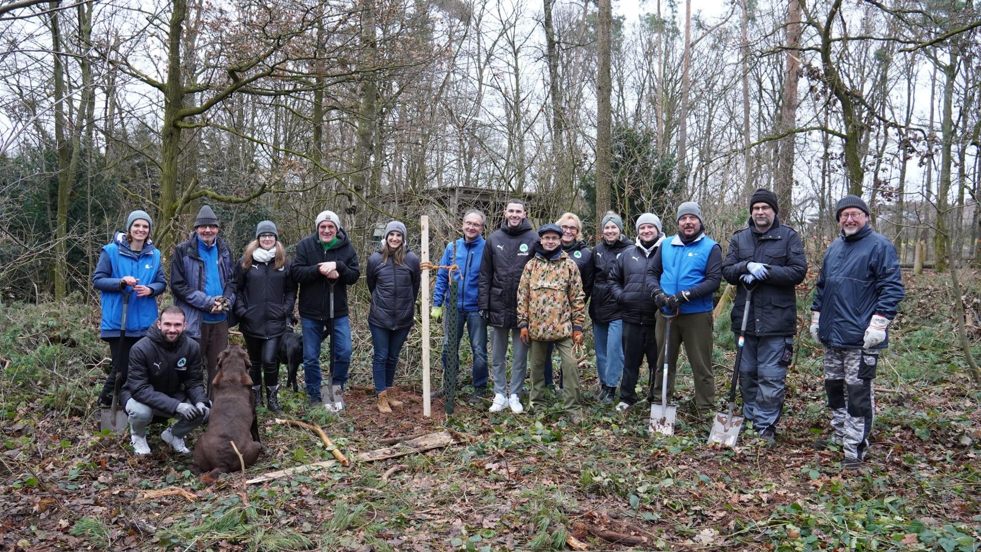 Mitarbeiter der SPVGG GREUTHER FÜRTH und ehrenamtliche Helfer der Kreisgruppe Fürth des Naturschutzverbands packten am 11. Dezember gemeinsam an. 50 Mal konnte das Kleeblatt in der Saison 2023/24 jubeln. Für die freiwilligen Helfer bedeutete diese Torbilanz, 50 Bäume einzupflanzen. Auch zwei der Torschützen selbst - Branimir Hrgota und Simon Asta - halfen mit.