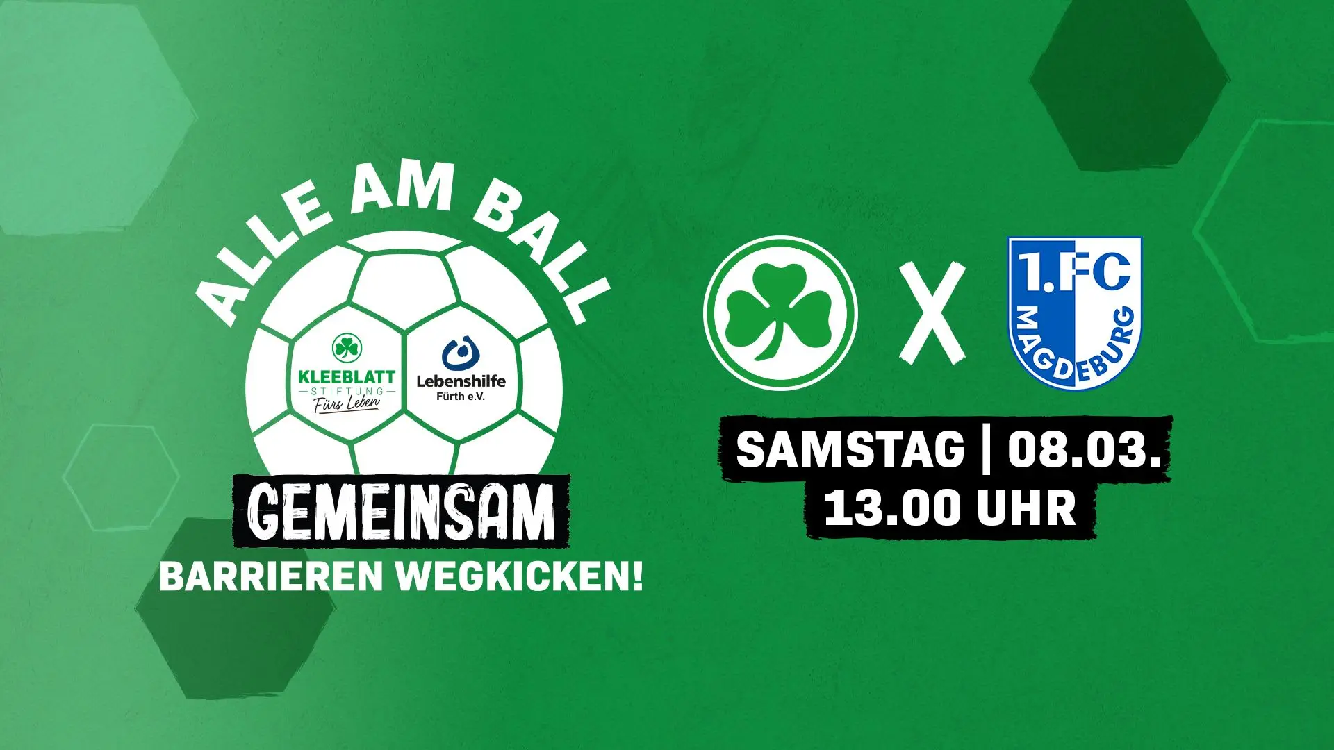 Wenn das Kleeblatt am kommenden Samstag den 1. FC Magdeburg im Ronhof empfängt, steht ein außergewöhnliches Heimspiel an. Denn gemeinsam mit der Lebenshilfe Fürth nutzt die Spielvereinigung die Heimpartie, um sich auf ganz besondere Weise für die Inklusion von Menschen mit Behinderung einzusetzen.