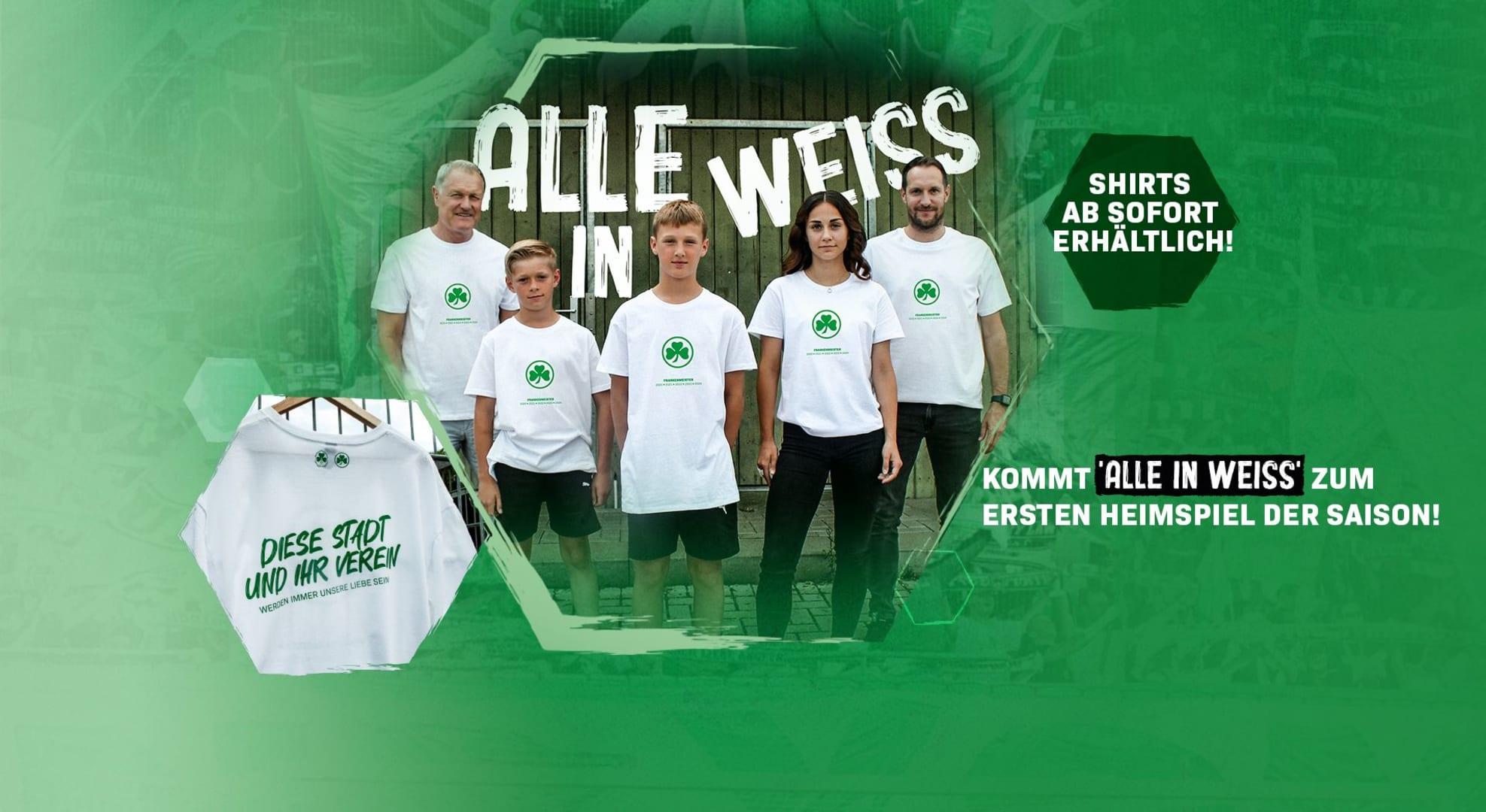Der erste Heimspiel der SPVGG GREUTHER FÜRTH steht unter dem Motto "Alle in weiß!". Das T-Shirt dazu ist ab sofort erhältlich.