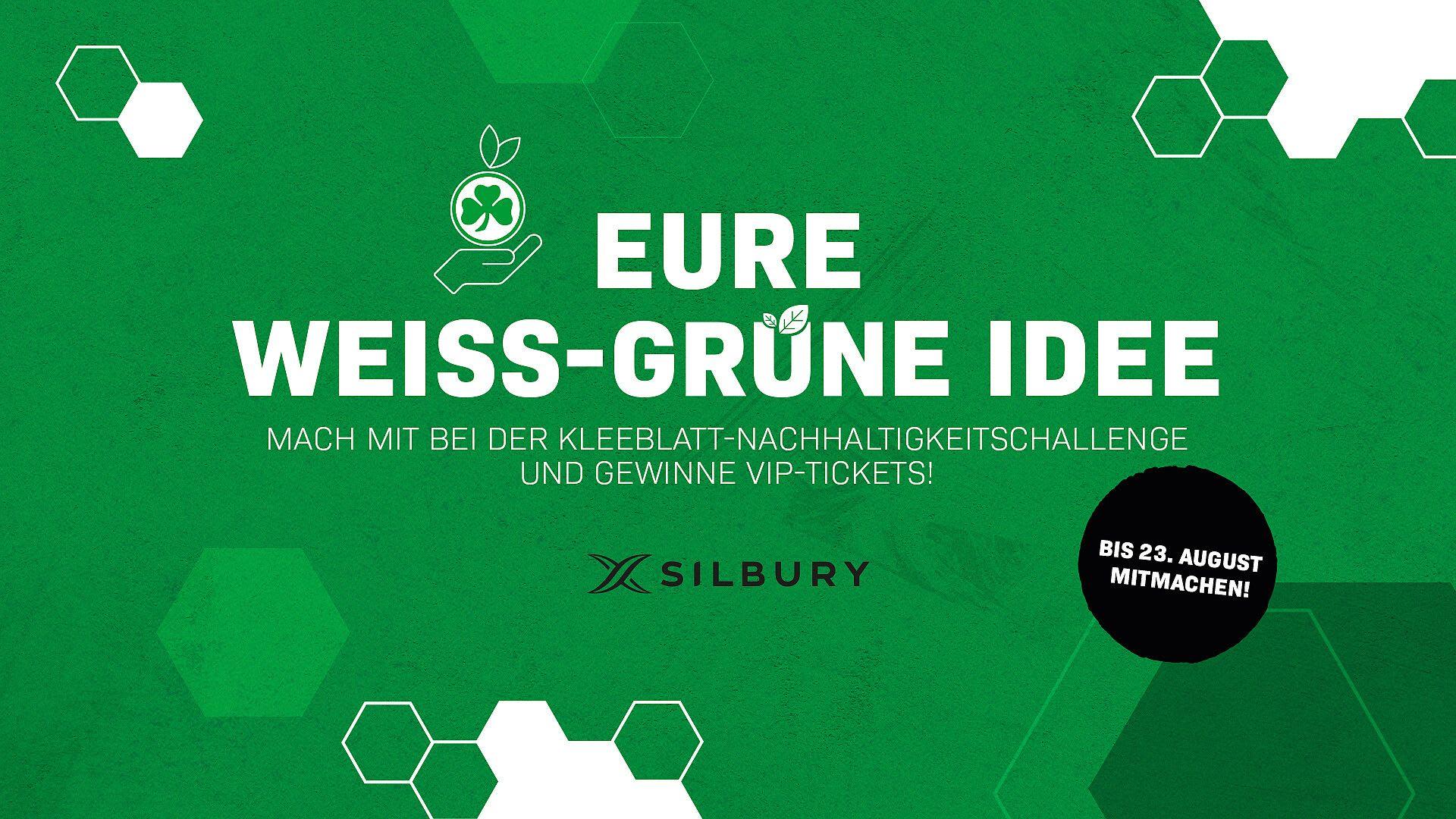 Gemeinsam mit Nachhaltigkeitspartner Silbury vergibt die SPVGG GREUTHER FÜRTH 2 mal 2 VIP-Tickets für das Heimspiel gegen Hannover 96. Reicht Eure weiß-grüne Idee für mehr Nachhaltigkeit beim Kleeblatt ein und gewinnt die Kleeblatt-Nachhaltigkeitschallenge!