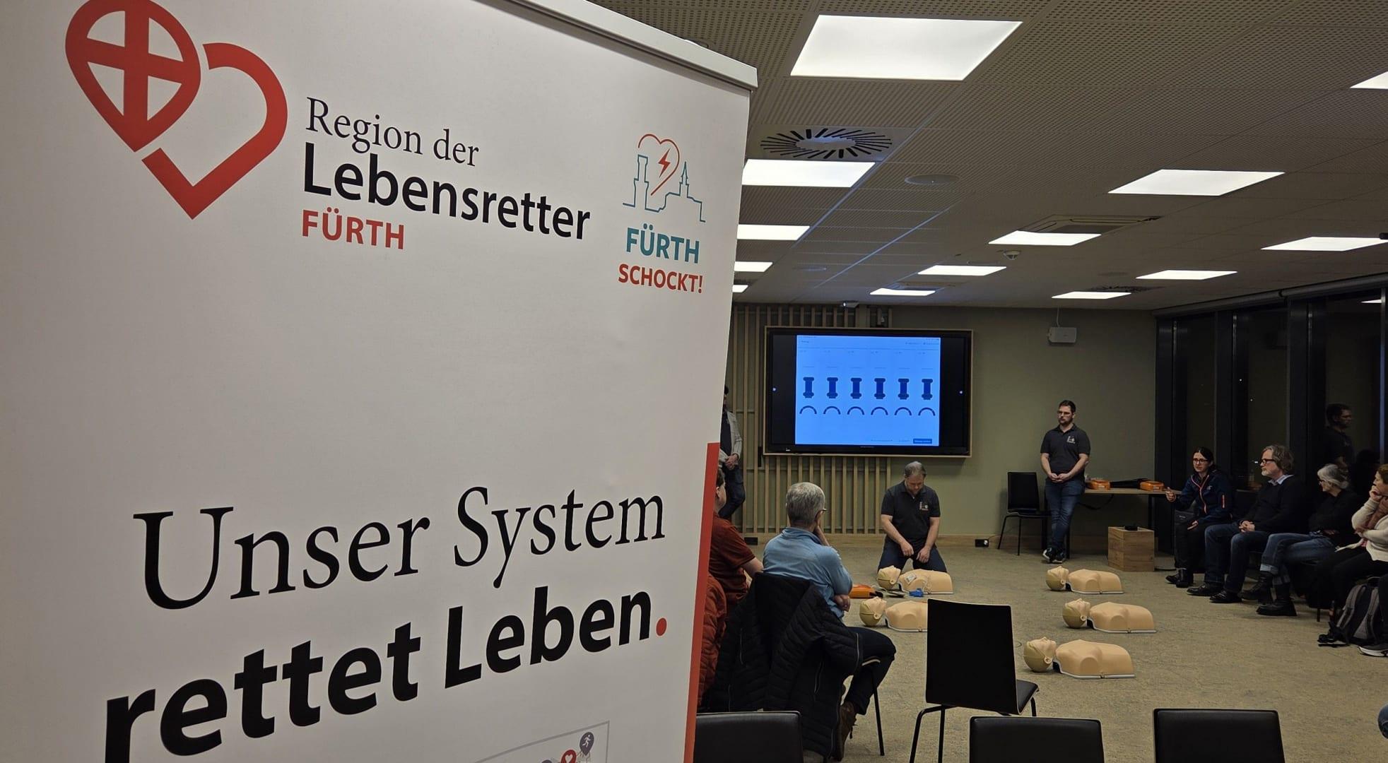 Bereits zum dritten Mal bot die AGNF die kostenlose Schulung an. Als Teil der Patenschaft der Spielvereinigung für die Initiative „Fürth SCHOCKT!“, sollen damit auch Fans regelmäßig gezielt auf medizinische Notfälle vorbereitet werden. Denn das Ziel der Inititiative ist, ein starkes Netzwerk aus geschulten Ersthelfern und öffentlich zugänglichen Defibrillatoren in Stadt und Landkreis Fürth aufzubauen. So sollen im Ernstfall kritische Minuten überbrückt werden, bis der Rettungsdienst eintrifft. Im Rahmen ihrer Patenschaft hat die Spielvereinigung zusätzlich zum Schulungsangebot ebenfalls zwei Defibrillatoren im und am Ronhof installiert, von denen einer jederzeit öffentlich zugänglich ist.