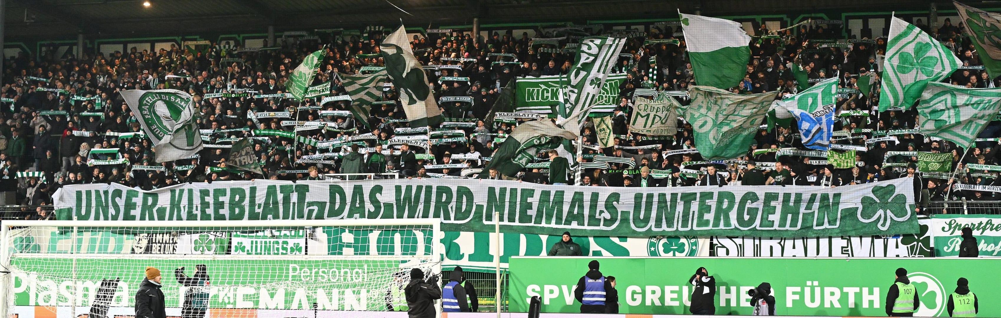 Aufruf der Fans: Im Vorfeld der Partie gegen den FC Schalke 04 ruft die aktive Fanszene alle Kleeblatt-Fans, dazu auf, sich um 13 Uhr in der Altstadt zu versammeln und gemeinsam Flagge zu zeigen. Der gemeinsame Fußmarsch zum Stadion startet dann um 18 Uhr am Grünen Markt und führt geschlossen in den Sportpark Ronhof | Thomas Sommer.