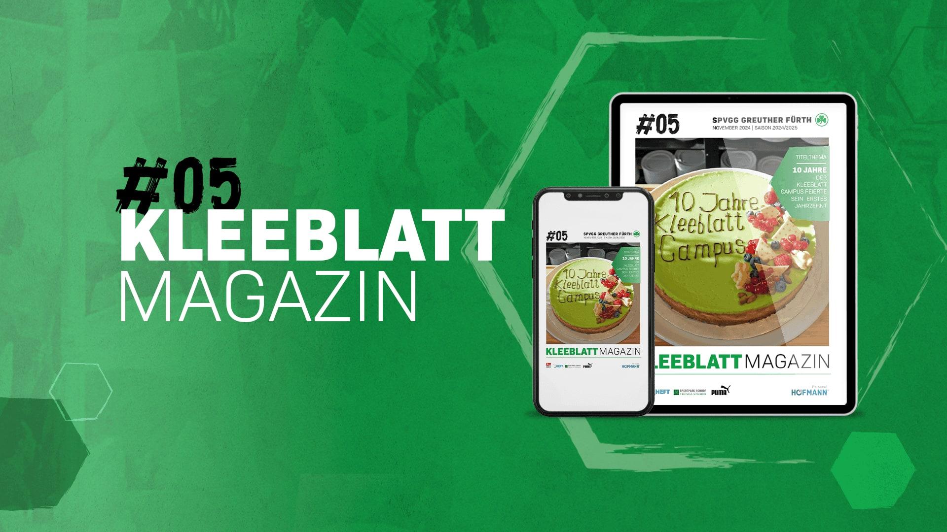 Das Kleeblatt Magazint erscheint immer am ersten Mittwoch des Monats - digital und kostenlos - auf der Homepage der SPVGG GREUTHER FÜRTH und in der Kleeblatt-App. Hier geht's direkt in die aktuelle Ausgabe.