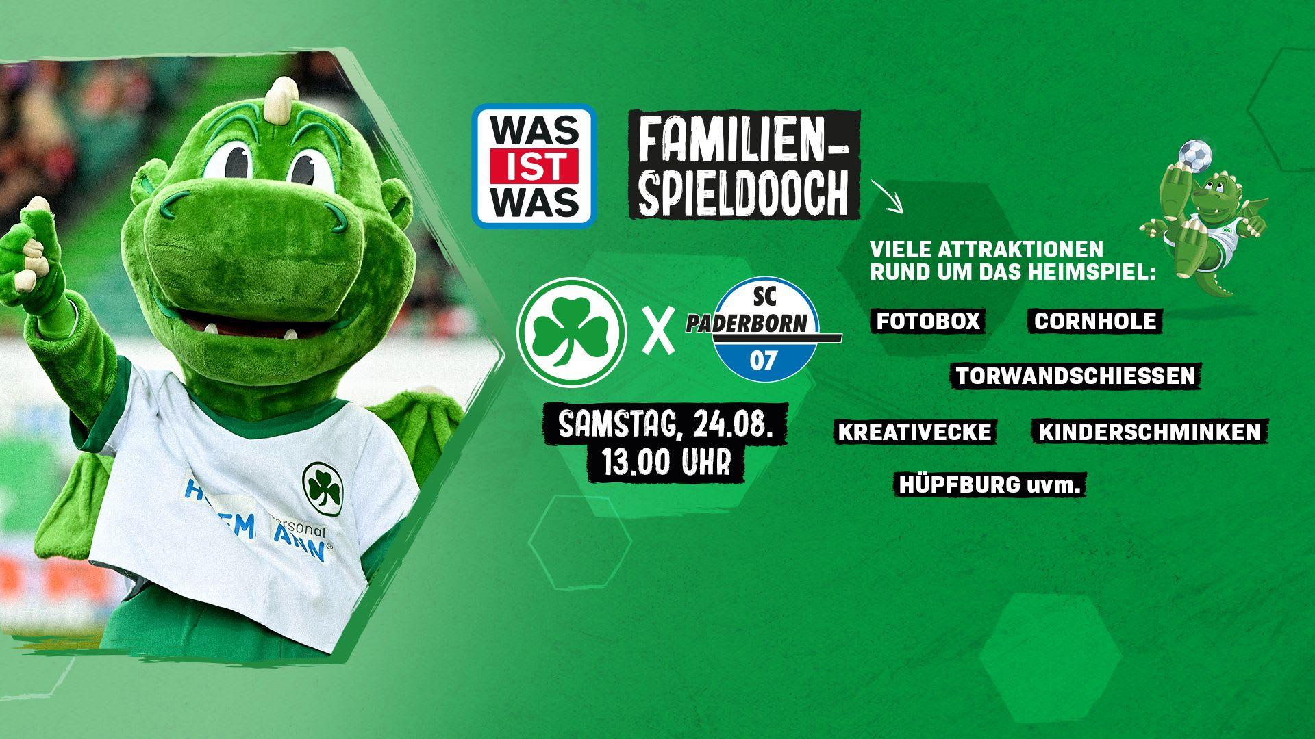 Wenn das Kleeblatt am 24. August zuhause auf den SC Paderborn trifft, können sich alle Kleeblatt-Fans nicht nur auf ein Fußball-Spitzenspiel freuen. Zum kommenden Heimspiel veranstaltet die SPVGG GREUTHER FÜRTH zusammen mit ihrem neuen Regionalpartner Tessloff Verlag ihren nächsten Familienspieltag, bei dem Euch unterschiedliche Spielestationen im Sportpark Ronhof | Thomas Sommer erwarten. Mit unserem Familien-Ticketangebot wird der Sommerferien-Ausflug in den Ronhof perfekt!