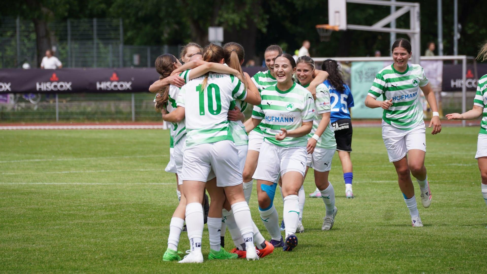Auch Trainer Felix Bernhard kam aus dem Strahlen kaum noch heraus und fand nur lobende Worte für seine Truppe, die den bayerischen Pokal nicht irgendwie, sondern in einer beeindruckenden Art und Weise gewonnen hatte. Gegen den Regionalliga-Dritten FFC Wacker München waren die Fürtherinnen vor knapp 500 Zuschauern über 90 Minuten das klar bessere Team, von Beginn an griffig, aggressiv gegen den Ball und nach vorne spielfreudig. Zur Pause führten die Kleeblatt-Frauen nach Treffern von Luisa Wölfel (10.) und Daniela Balda (19.) sowie einem von Balda vorbereiteten Eigentor (41.) mit 3:1, Elena Grill machte kurz nach dem Seitenwechsel dann mit dem 4:1 alles klar (48.). Die Fürtherinnen ließen trotz der komfortablen Führung nicht nach und hätten das Ergebnis noch deutlich in die Höhe schrauben können. Lena Franke erhöhte in der 77. Minute, den Gästen gelang in der Nachspielzeit dann noch ein Treffer zum 5:2-Endstand.