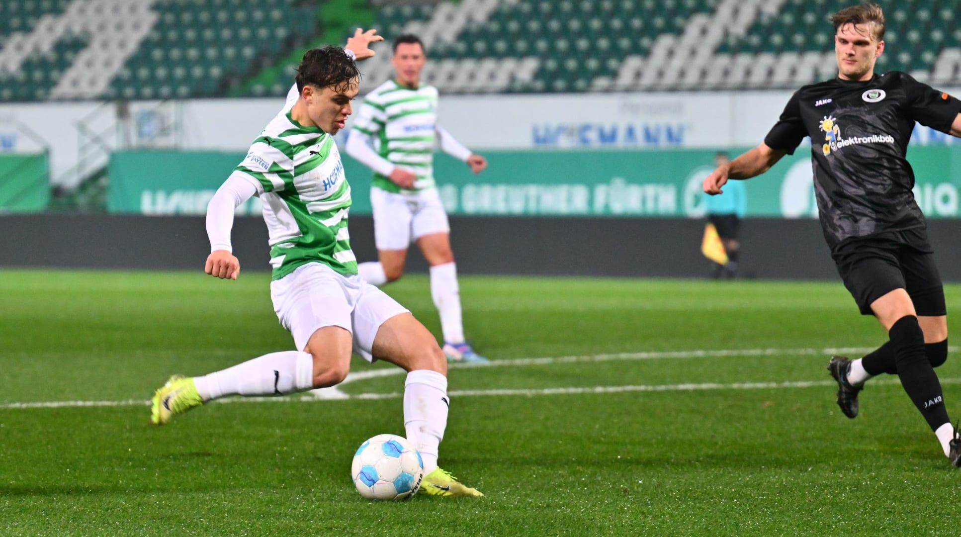 Drittes 1:1-Unentschieden am Stück für die U23 der SPVGG GREUTHER FÜRTH. Im mittelfränkischen Nachholspiel in der Regionalliga Bayern gegen die SpVgg Ansbach war der Fürther Nachwuchs dem Dreier nah, kassierte allerdings in der 82. Minute noch den Ausgleichstreffer. Marlon Fries hatte die Spielvereinigung im Sportpark Ronhof | Thomas Sommer mit einem platzierten Schuss ins lange Eck nach einem Vorstoß über die rechte Seite in Führung gebracht (25.).