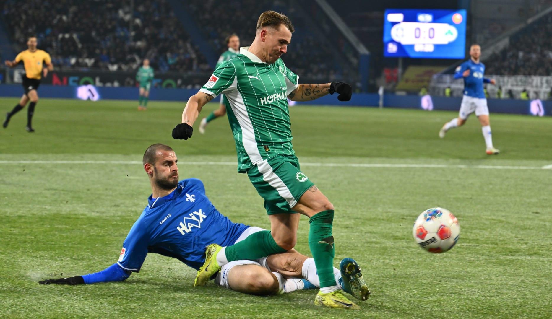 Keine vier Minuten darauf wurde Futkeu in guter Position geblockt, auf der anderen Seite scheiterte Hornby in der Nachspielzeit per Kopf an Timo Schlieck, der in Darmstadt zu seiner Premiere für die Weiß-Grünen kam.