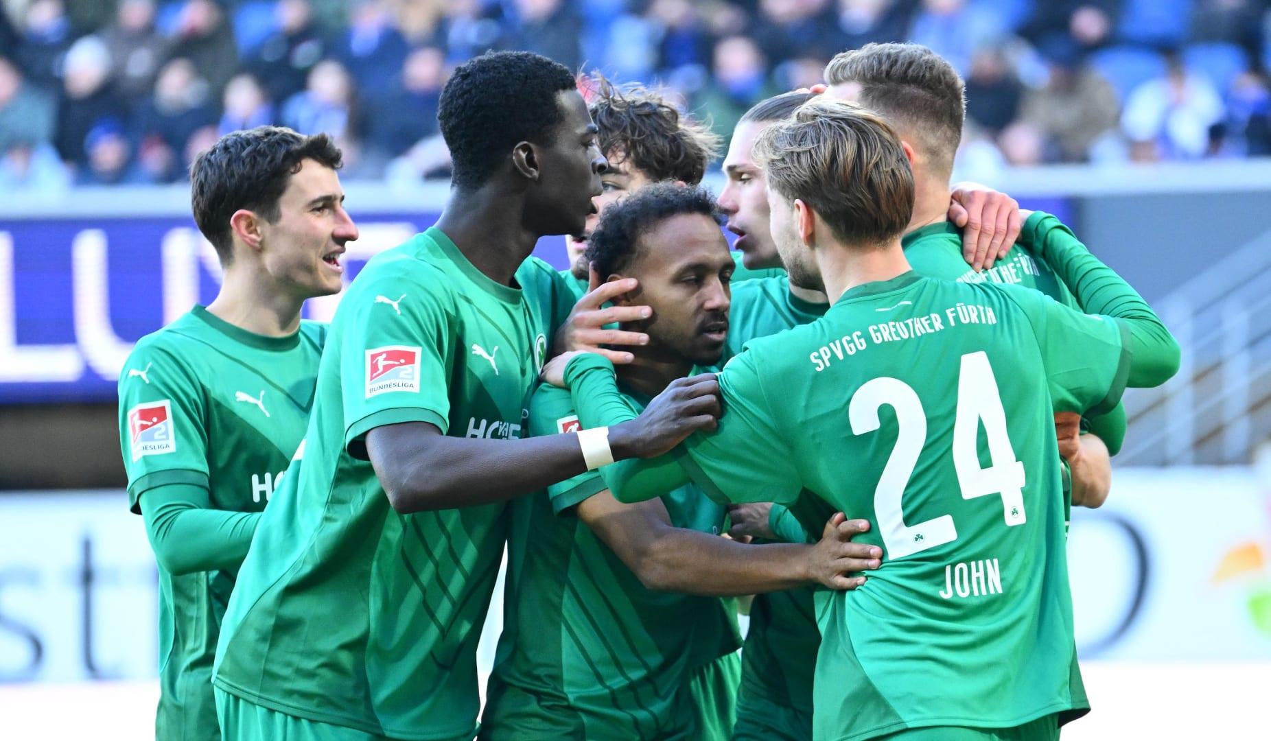 Die SPVGG GREUTHER FÜRTH hat ihren ersten Sieg im Kalenderjahr mit einem 2:1-Erfog beim SC Paderborn gefeiert. Branimir Hrgota und Noah Loosli erzielten für die Fürther die Treffer. Für Paderborn, das über eine Stunde lang wegen einer Roten Karte für Keeper Manuel Riemann in Unterzahl spielen musste, schaffte Adriano Grimaldi den Anschlusstreffer, doch die Fürther brachten die Führung schließlich über die Zeit.