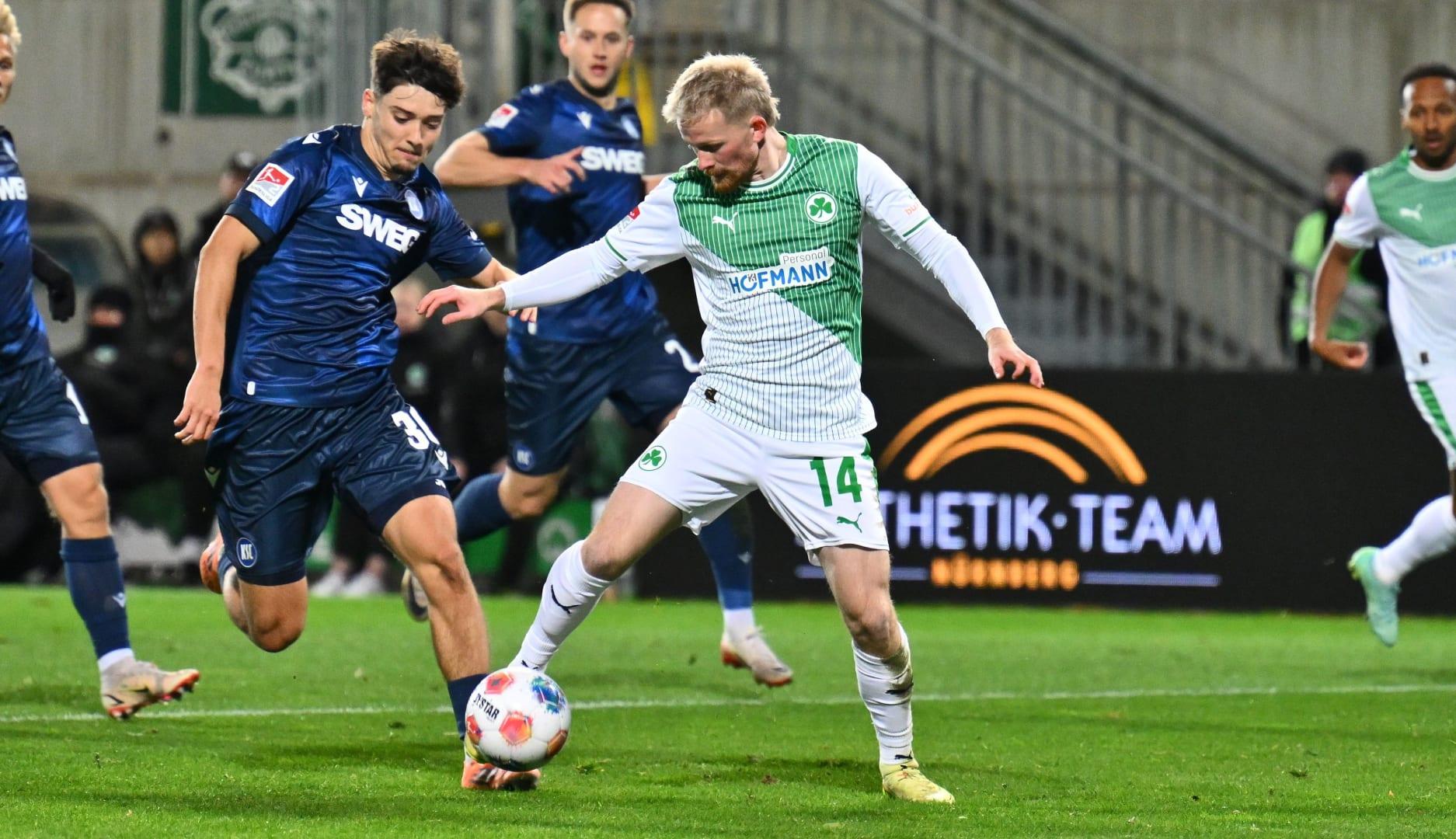 Die SPVGG GREUTHER FÜRTH verlor gegen den Karlsruher SC 1:4. Die Gäste waren vor der Pause sehr effektiv und machten aus zwei Chancen durch Fabian Schleusener und Lilian Egloff zwei Treffer. Das 0:3 erzielte Marvin Wanitzek, Branimir Hrgotas 1:3 in der Nachspielzeit (90.+1) kam zu spät, zumal Wanitzek dann noch das 1:4 nachlegte.