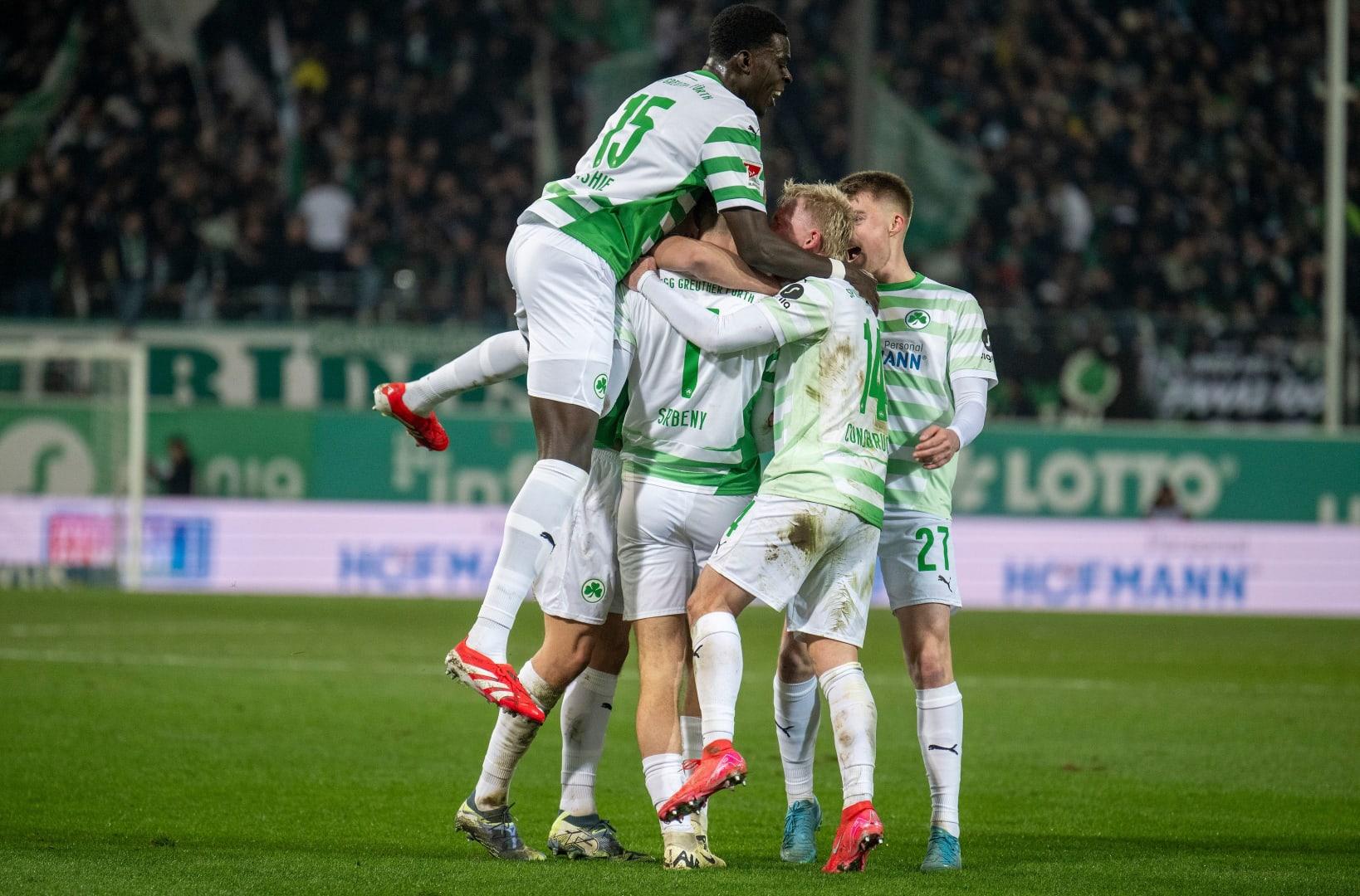 Die SPVGG GREUTHER FÜRTH gewinnt am Freitagabend verdient mit 2:1 gegen den SSV Jahn Regensburg. Die Oberpfälzer gingen früh in Führung, als Sargis Adamyan in der sechsten Minute aus kurzer Distanz traf. Dennis Srbeny und Jomaine Consbruch schossen noch vor der Pause die beiden Fürther Tore, die zu einem letztlich hart erkämpften Dreier führten.