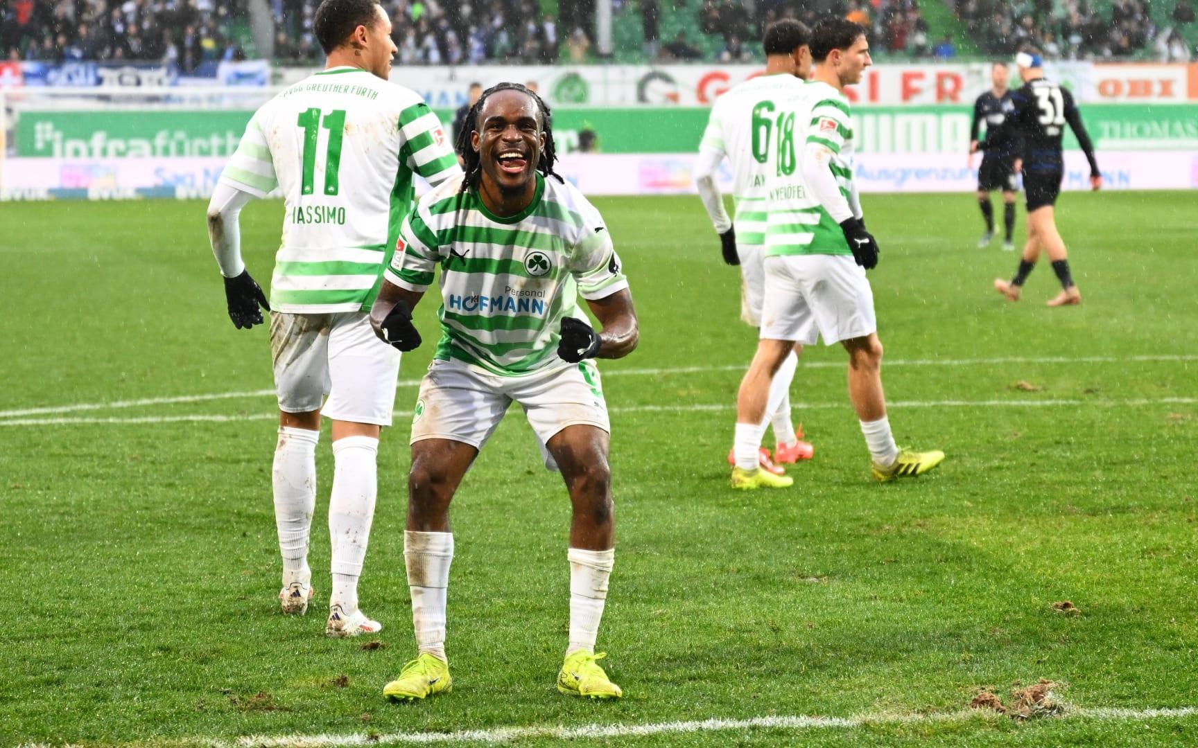 Die SPVGG GREUTHER FÜRTH hat Hertha BSC durch zwei Treffer von Noel Futkeu mit 2:1 (1:1) Toren besiegt. Die Berliner waren früh durch Ibrahim Maza in Führung gegangen. Doch das bis auf die Schlussphase, wo man nach Gelb-Rot für Maximilian Dietz in Unterzahl spielen musste, überlegene Kleeblatt holte sich den Dreier klar verdient.