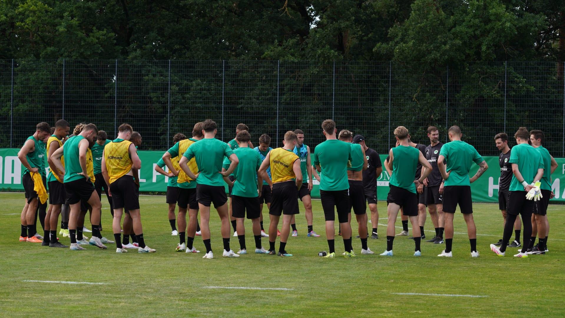Bei hochsommerlichen Temperaturen bat Trainer Thomas Kleine pünktlich um 16 Uhr zum ersten Training der Vorbereitung auf die Saison 2025/26. Mit dabei waren bis auf Lukas Reich (Sonderurlaub nach U19-EM), Sacha Banse und Aaron Keller (beide noch verletzt) alle Spieler des neu formierten Kaders mit 12 Neuzugängen in der Sommerpause. Zudem gab es mit Marlon Fries und Adem Imeri zwei Trainingsgäste aus der U23, die erstmal am Profitraining teilnehmen werden.