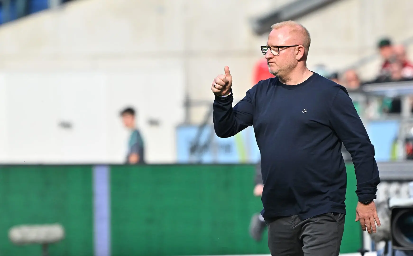 Heiko Vogel: „Ich bin froh, dass wir gewonnen haben. Die zweite Hälfte war grenzwertig für mein Herz. Aber: Wie die Mannschaft den Matchplan in der ersten Hälfte umgesetzt hat, war so, wie es in meiner Trainerkarriere vorher noch nie dagewesen war. Ich muss meiner Mannschaft ein riesiges Kompliment machen. Wir haben einiges angepasst. Ich habe die Mannschaft mit ins Boot genommen, die dann entscheiden durfte, wie sie sich wohl fühlt. So wie es in der ersten Halbzeit war, haben wir uns sehr wohl gefühlt. Ich glaube, dass es eine verdiente Pausenführung für uns war. Es war klar, dass die Power, die Hannover zweifelsohne hat, immer mehr zu Drucksituationen führen wird. Wir konnten nicht mehr so gut entlasten und kriegen das Ausgleichstor, was so nicht geplant war. Da hat Prüfi (Silas Prüfrock) einen kleinen Rüffel bekommen, weil wir gesagt haben, wir spielen den ersten Abstoß lang und so lang hat er ihn dann doch nicht gespielt. Aber er hat dann ein unglaubliches Spiel abgeliefert, was man dann auch braucht, um zu gewinnen. Wir hatten heute zudem das notwendige Spielglück. Ich bin sehr stolz auf die Mannschaft und sehr froh, dass wir drei Punkte haben.“