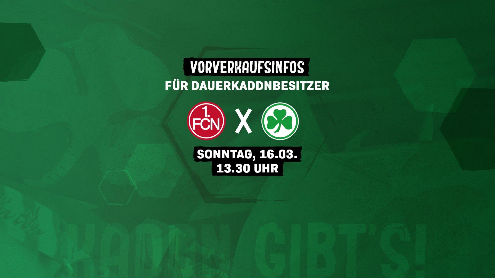 Am 16. März (Sonntag, 13:30 Uhr) steht das 274. Frankenderby an. Die SPVGG GREUTHER FÜRTH ist zu Gast beim 1. FC Nürnberg. Dauerkartenbesitzer erhalten ein Vorkaufsrecht auf Tickets für das Auswärtsderby.