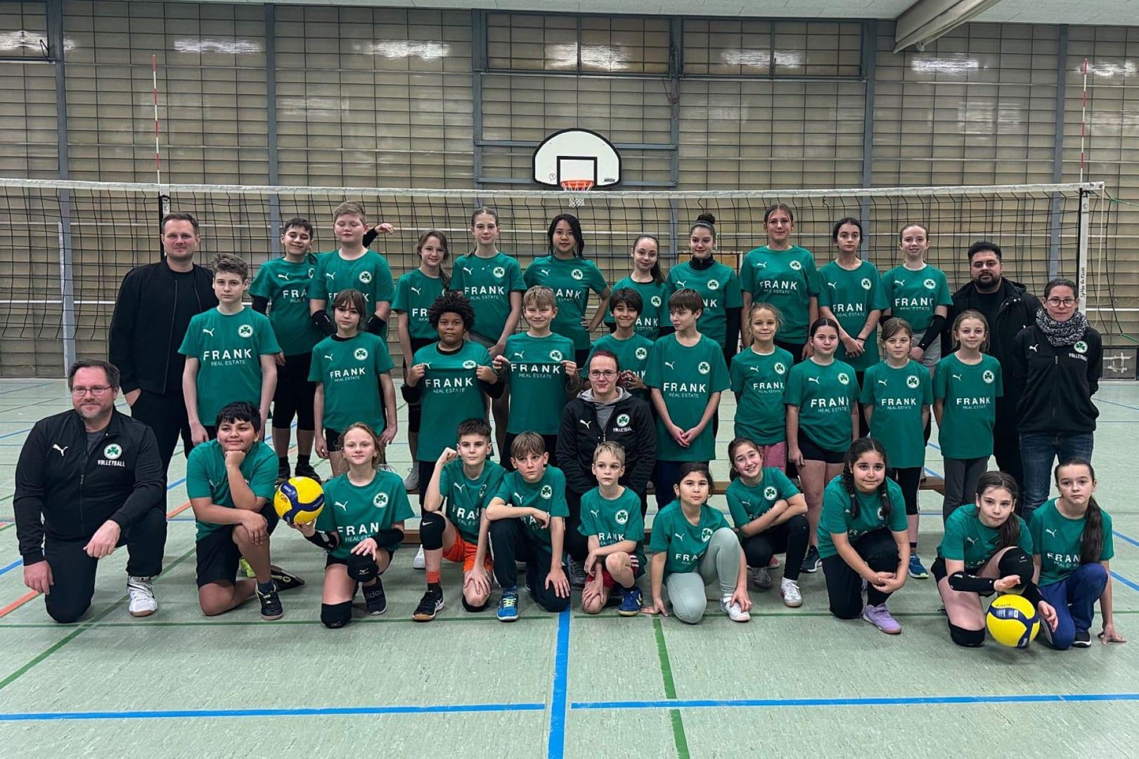 Eine freudige Weihnachtsüberraschung erreichte dieses Jahr unsere Jüngsten. Für alle Trainingsteilnehmer dieser Gruppe stellte, das Unternehmen Frank Real Estate aus Nürnberg ein grünes Shirt zur Verfügung und die Aufregung und Freude der Kinder war, nicht zu übersehen. Nachdem die Trainingsgruppe in der letzten Spielzeit auf 40 Trainingsteilnehmer gewachsen war, war das ein weiterer Schritt in Richtung Teambildung. Schön, wenn die Kinder nicht nur zusammen trainieren können, sondern auch einheitlich auftreten können. Vielen, vielen Dank an das Team der Frank Real Estate für die großzügige Spende. ms